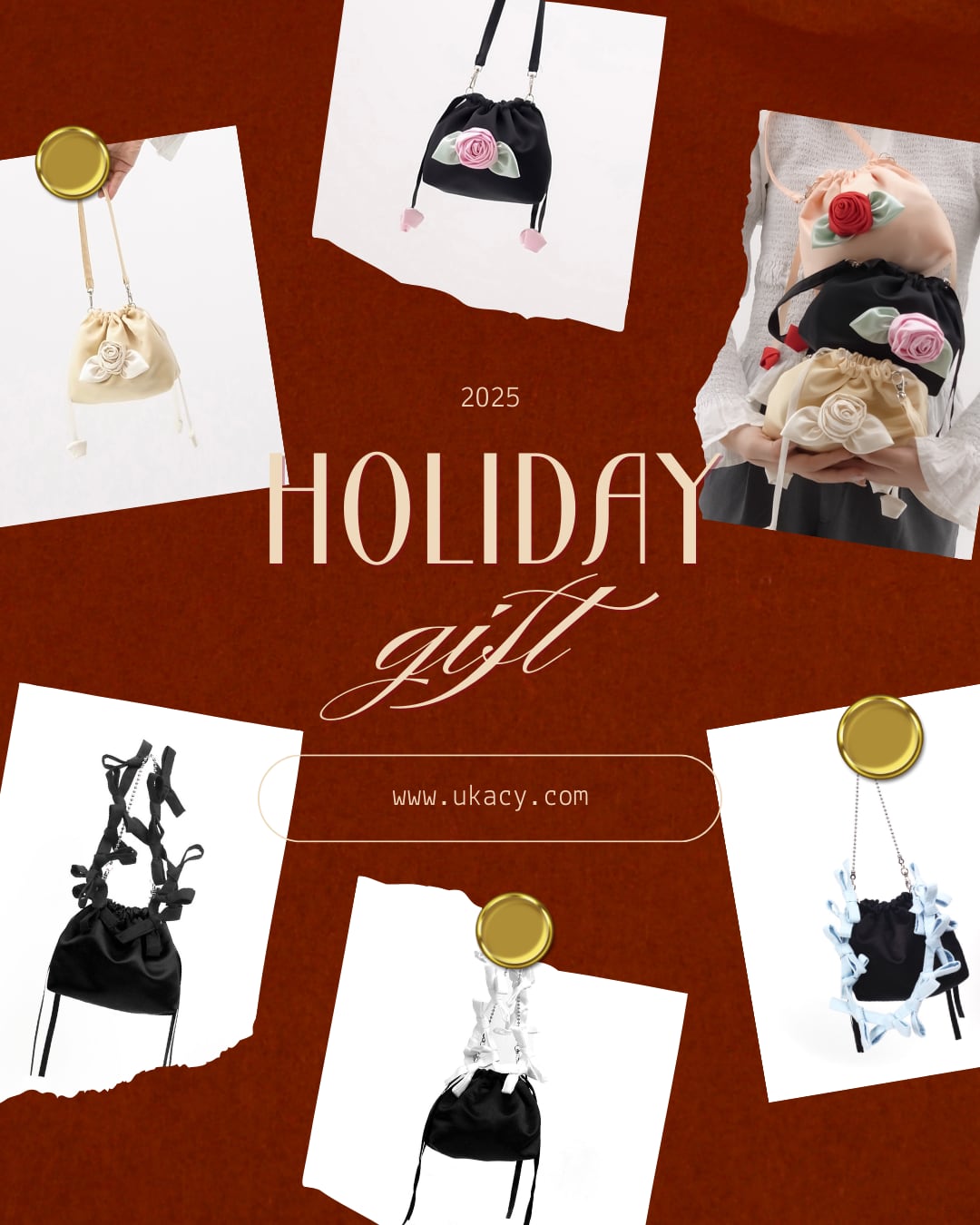 12月14日までのオーダーは12月24日までのお届け ○アイテム説明 丸みのあるukacyらしいフォルムに、ローズモチーフをあしらったrose bag。 ボディだけでなくリボン紐の先にも花を添え、より安定したシルエットに仕上げました。 ○アイテム詳細 素材:ポリエステル・コットン・ステンレス 持ち手長さ:42cm(取り外し可) 本体マチ:6cm 本体横:21.5cm 本体縦:19cm 裏地:あり(ブラウン) ※色や形に若干の違いが生じる場合がございますのでご了承ください。 ※強い力や衝撃は破損の原因となります。ご注意ください。 ※摩擦・水濡れなどによる脱色・汚損はどは避けられません。ご理解ください。